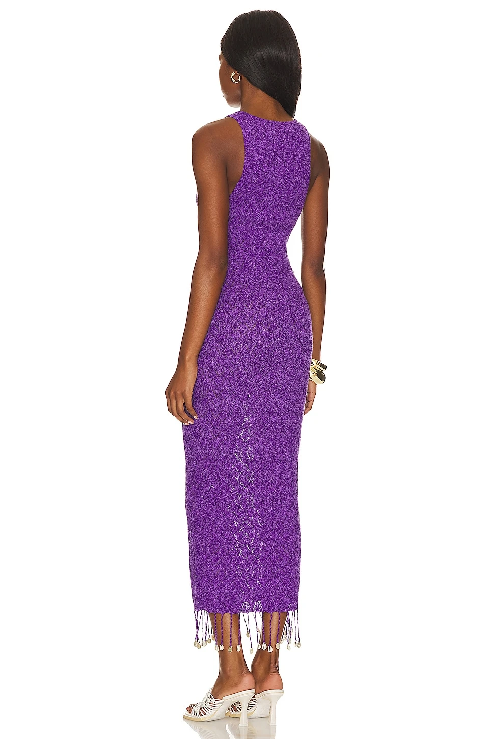Front tie closure at bust - Fringe pukka shell accents at hem