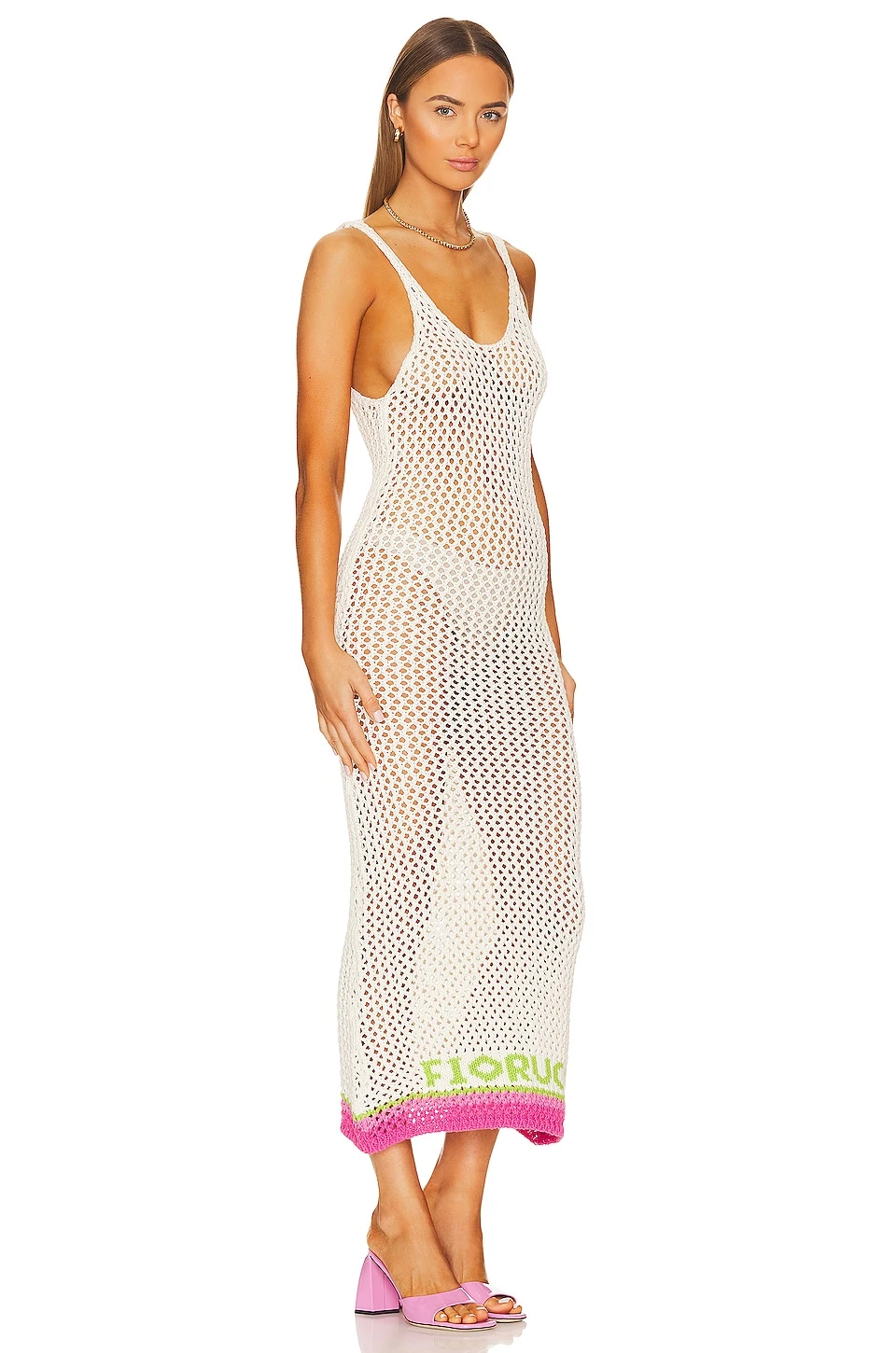 - Midweight open crochet fabric with Fiorucci logo at hem