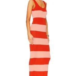 Zimmermann ROBE MI-LONGUE Coral & Shell Pink Rugby Stripe