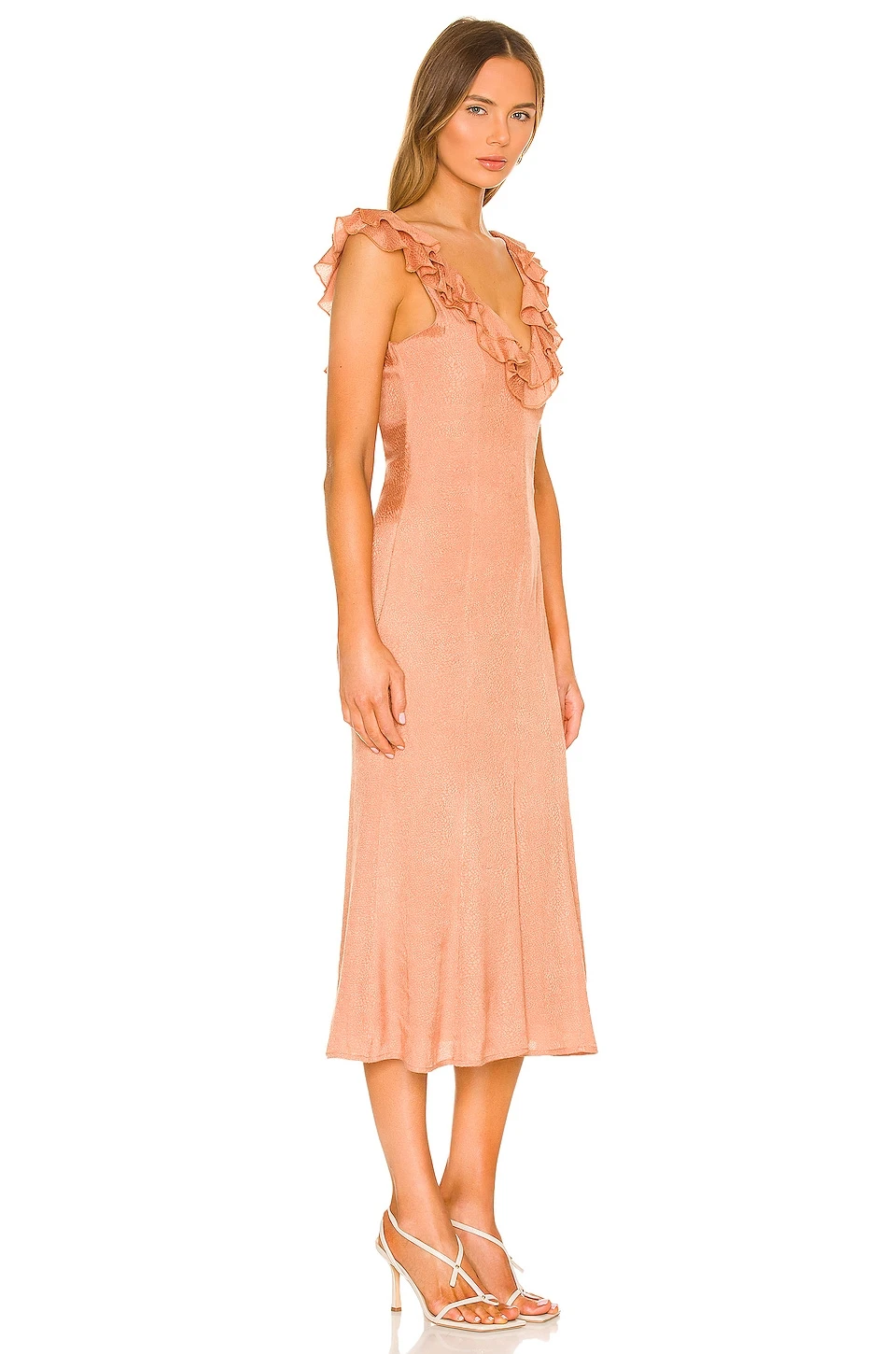 - Ruffled neckline overlay