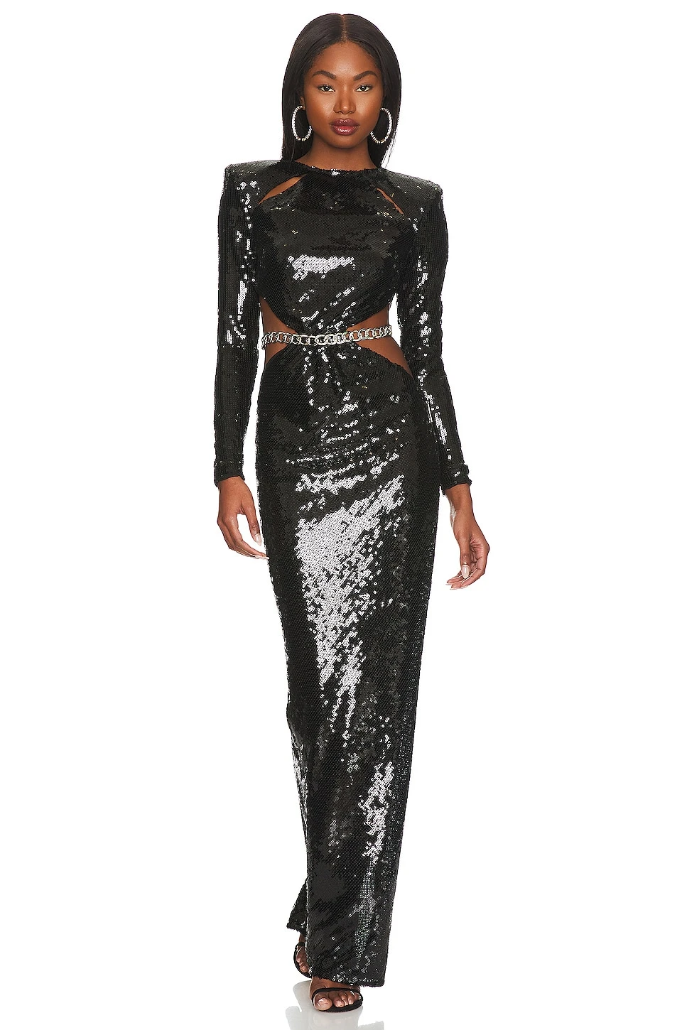 Front and back cut-outs - Sequined embellishments throughout with side slit
