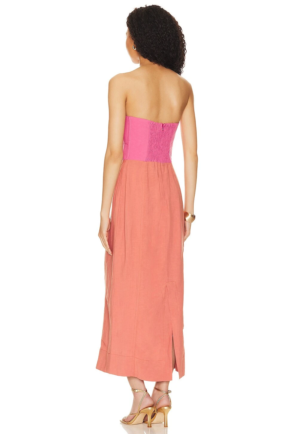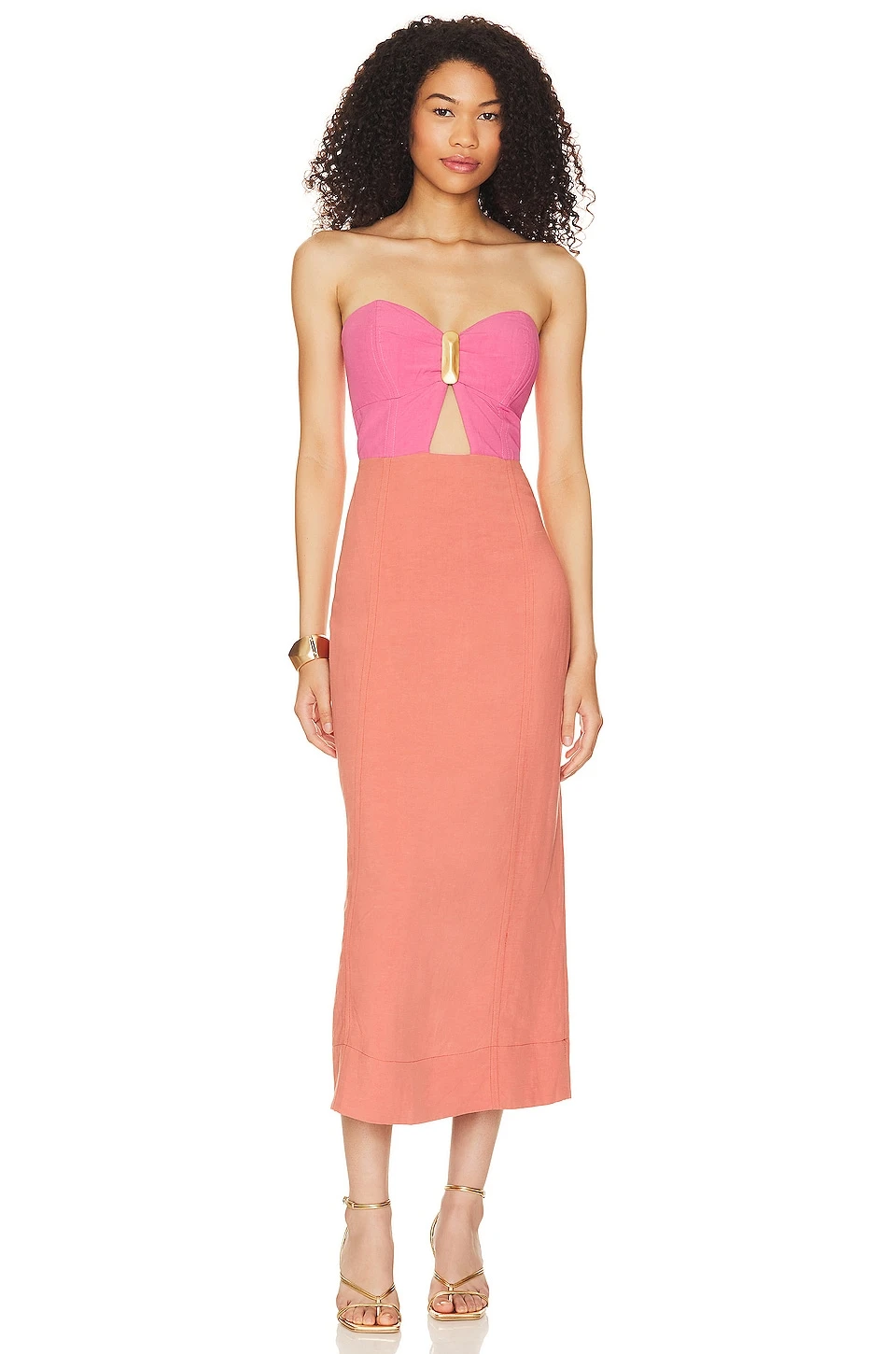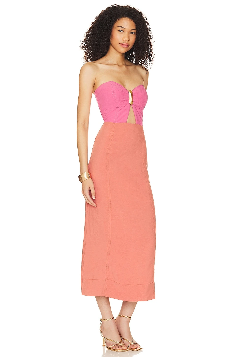 Bust cut-out with gold-tone accent - Tissu lin et fente dos