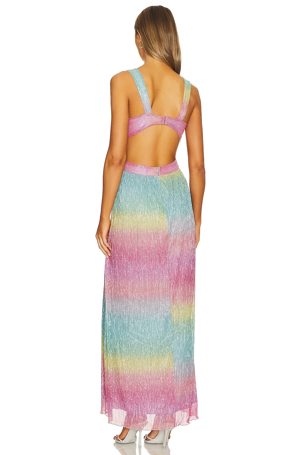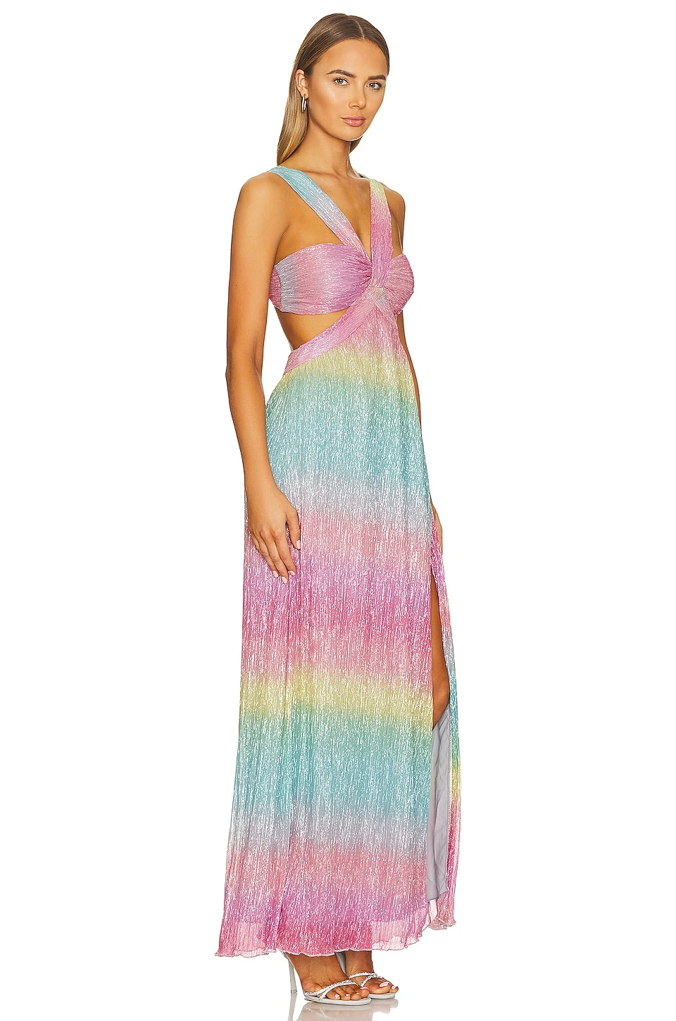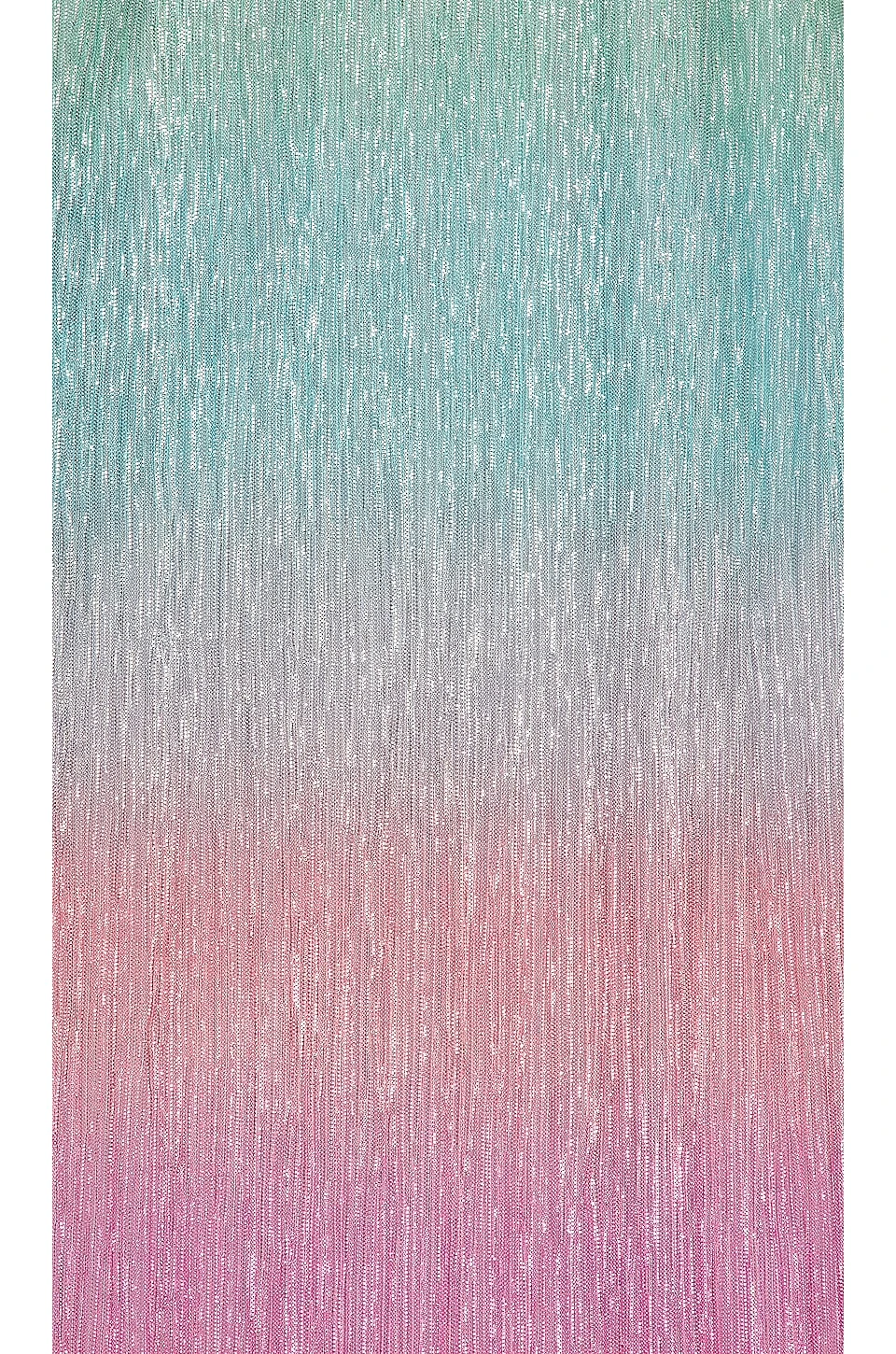 - Lightweight fabric with metallic threading throughout and surplice hem