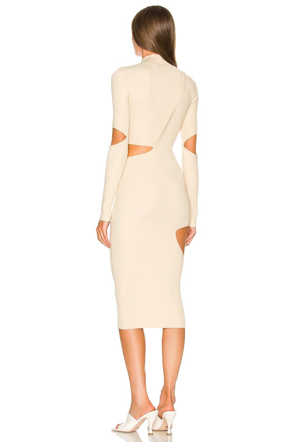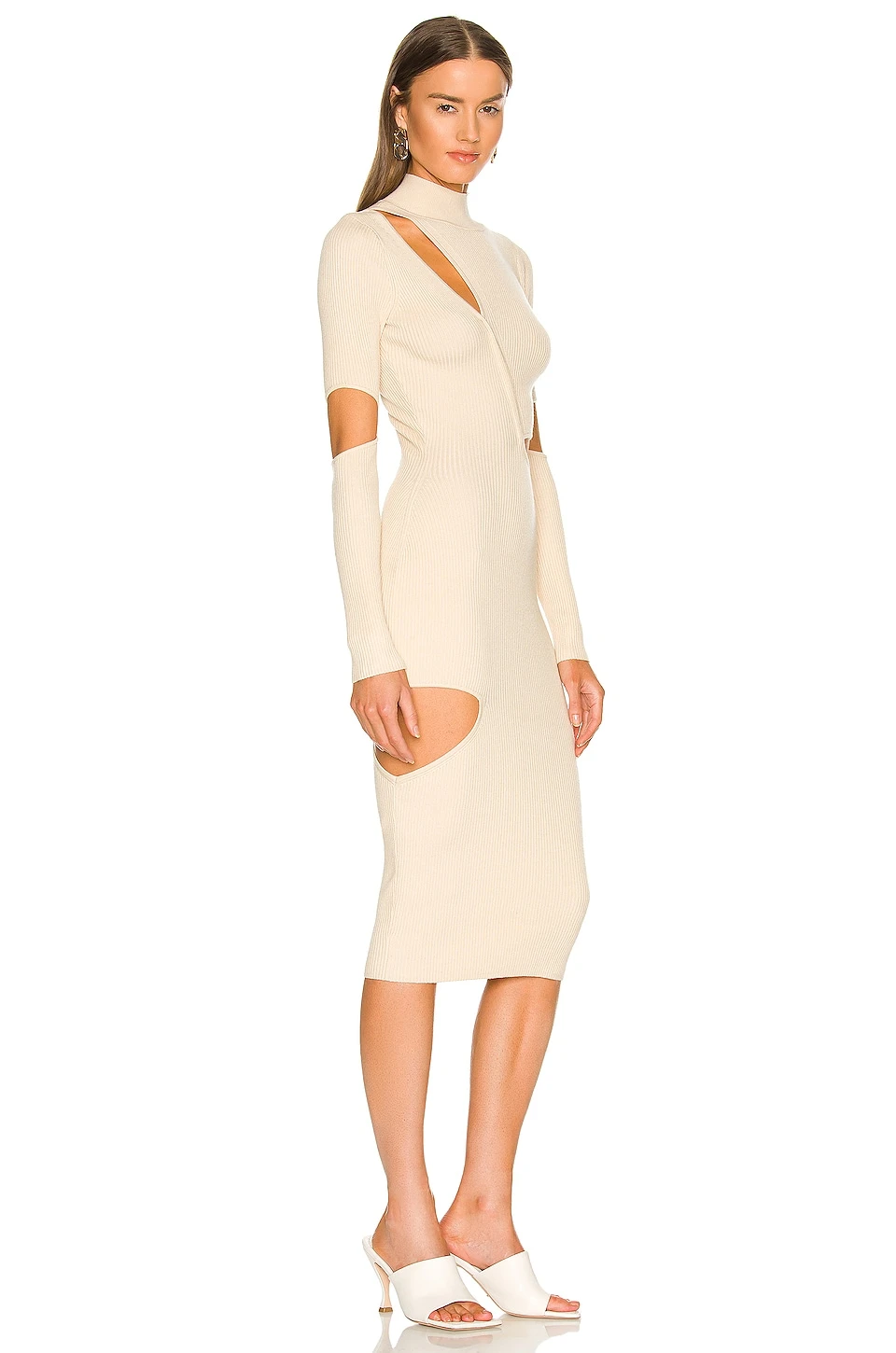 Découpes aux épaules, à la taille, aux manches et à la jupe - Tissu semi-léger maille côtelée