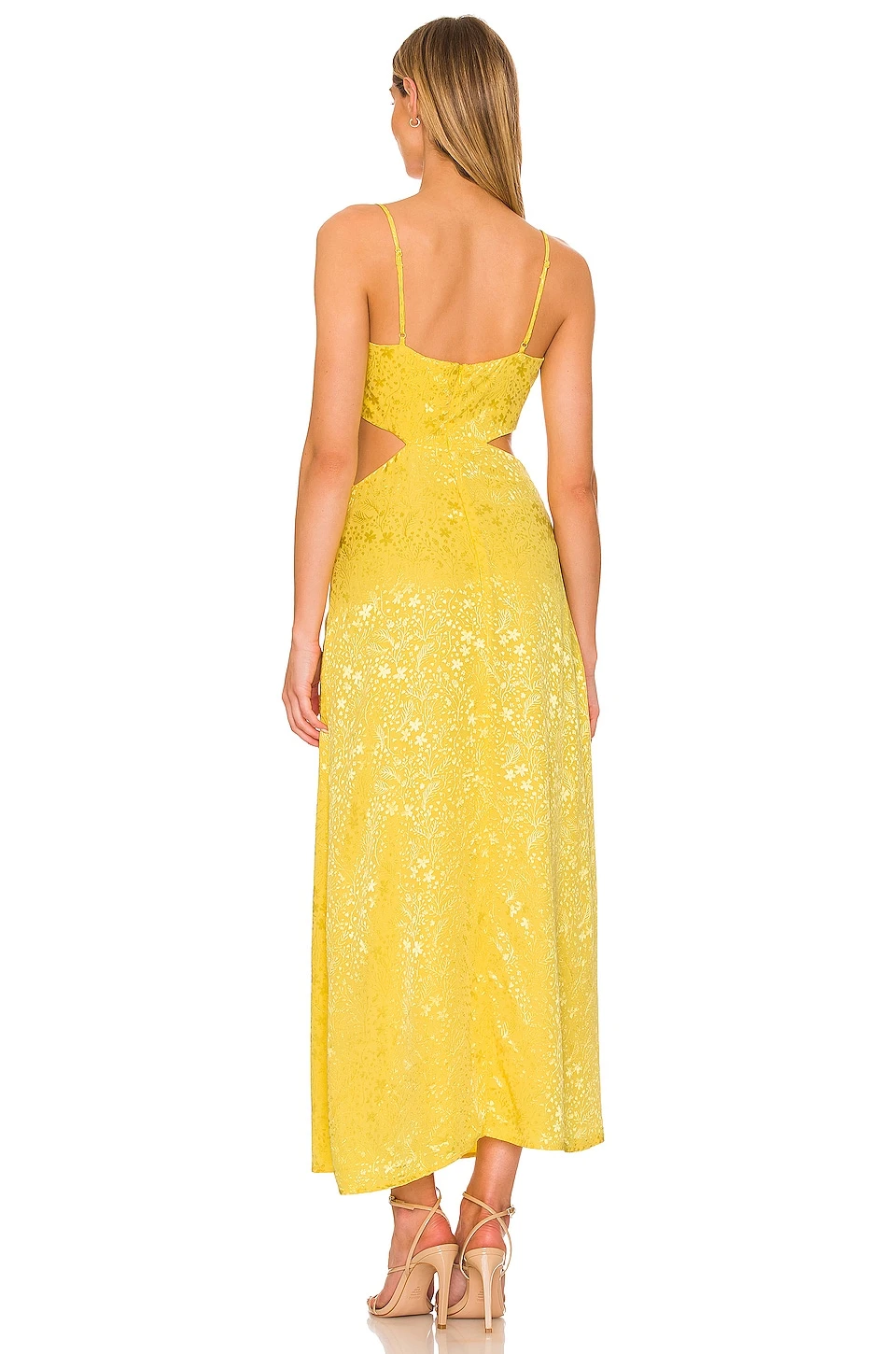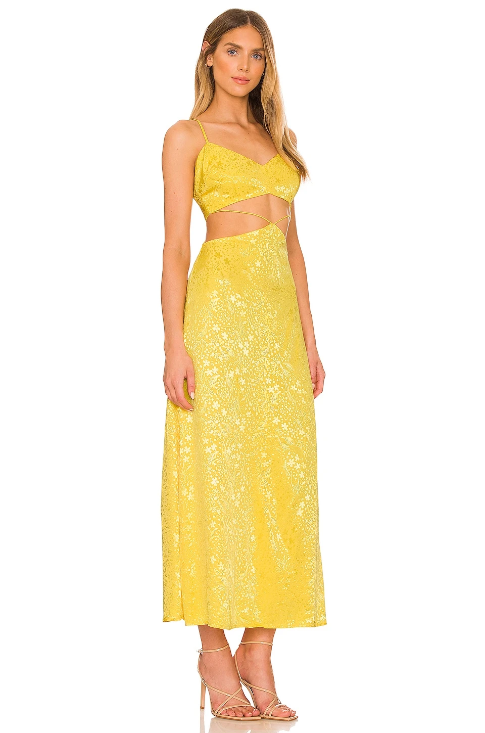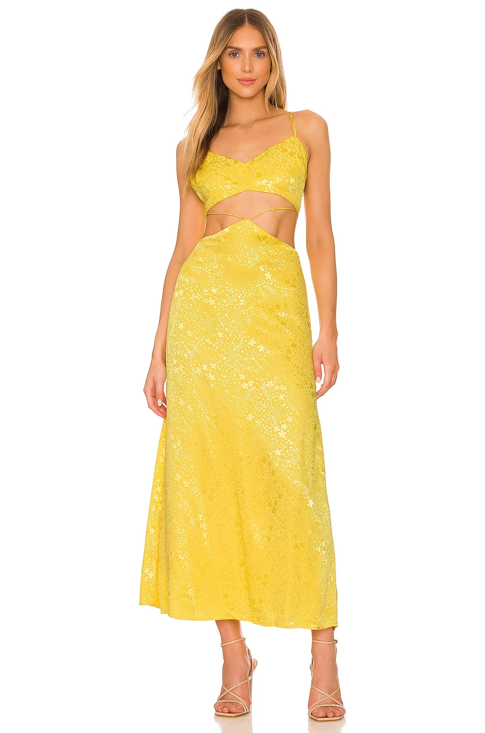 ROBE MI-LONGUE ERIK Yellow Floral Jacquard