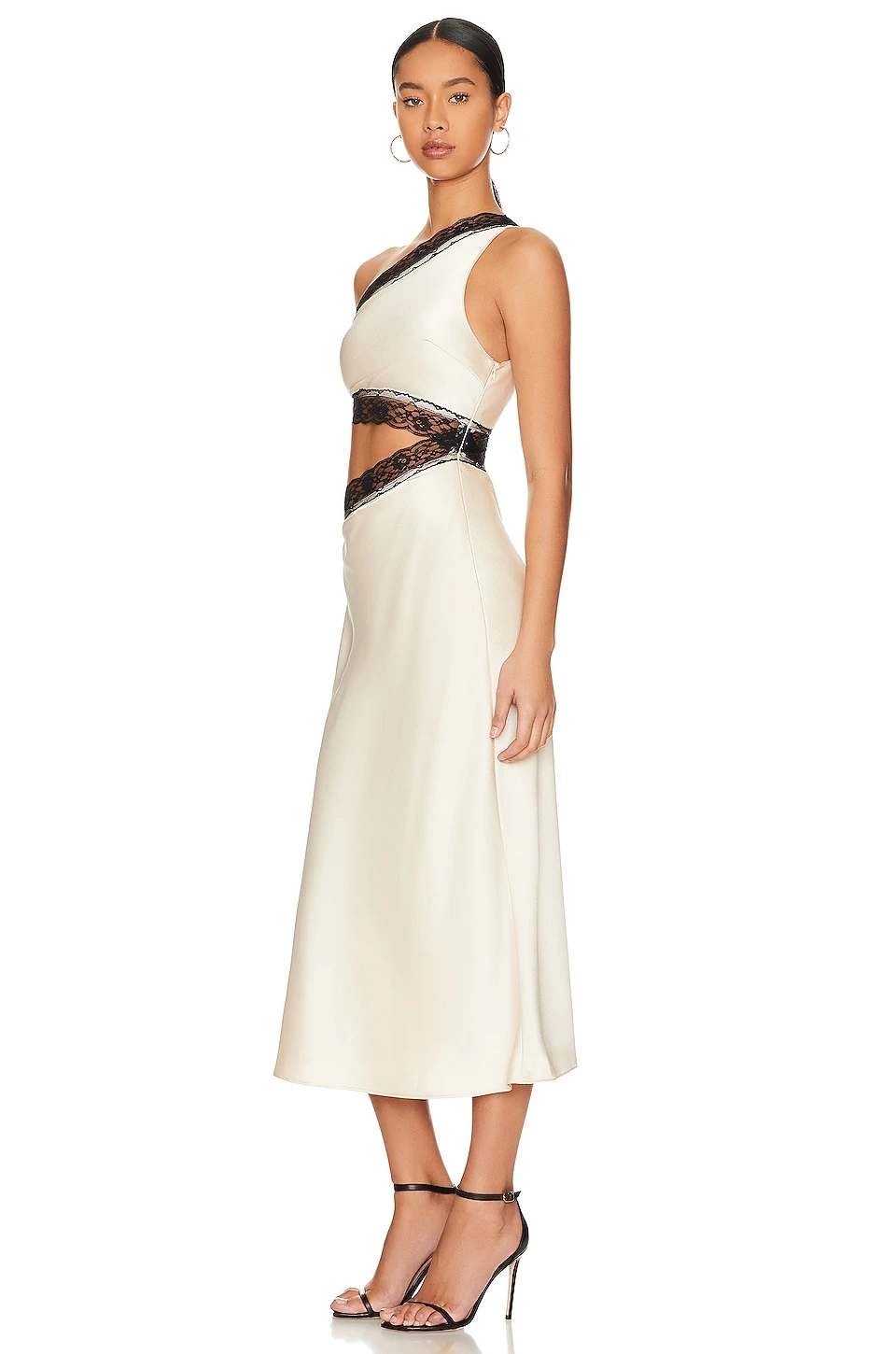 Lightweight satin fabric with delicate lace trim and ruffle hem - Revolve Style N° MISR-WD261