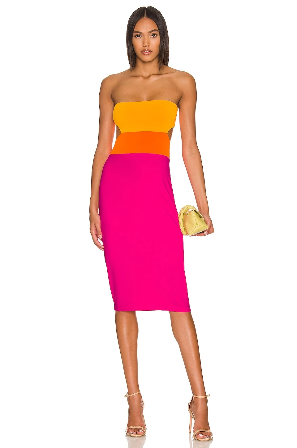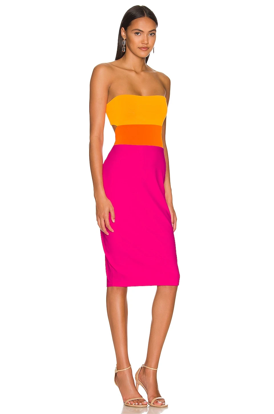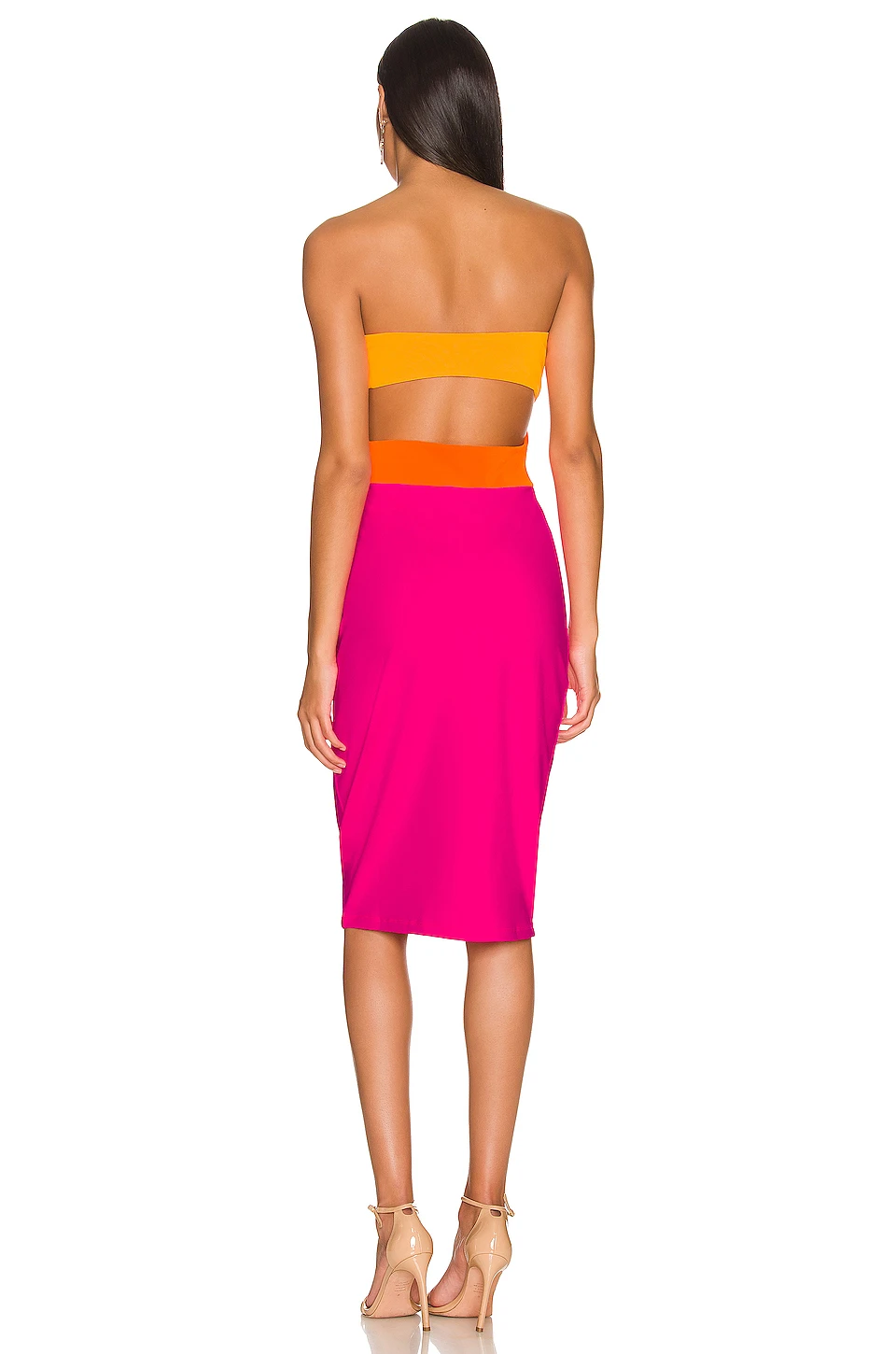 90% polyamide, 10% Lycra. Fabriqué aux États-Unis. Machine wash. Non doublé. À enfiler. Découpe dos. Tissu jersey stretch style colorblocked. Revolve Style N° SUSA-WD2001. Fournisseur Style N° 0422SUPD00993.