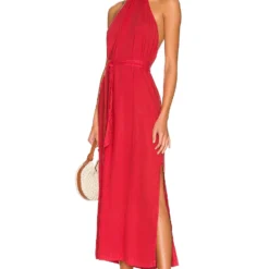 ROBE SMOCKED WAIST HALTER MIDI DRESS Azaleza