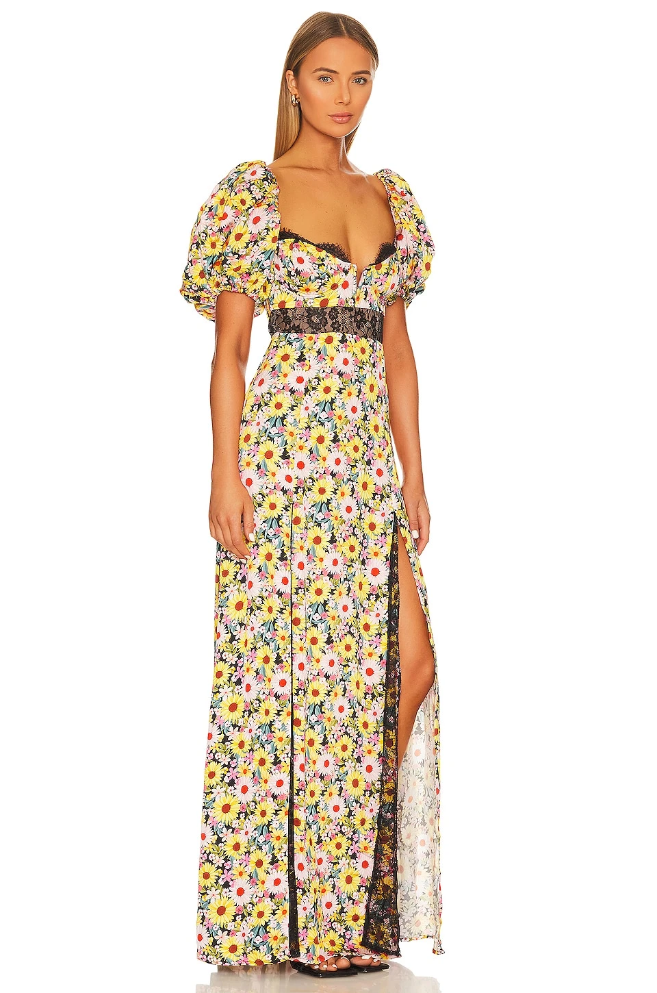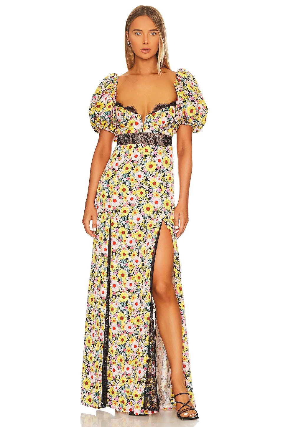 Lightweight satin fabric with lace trim and side seam slits - Revolve Style N° FORL-WD1055