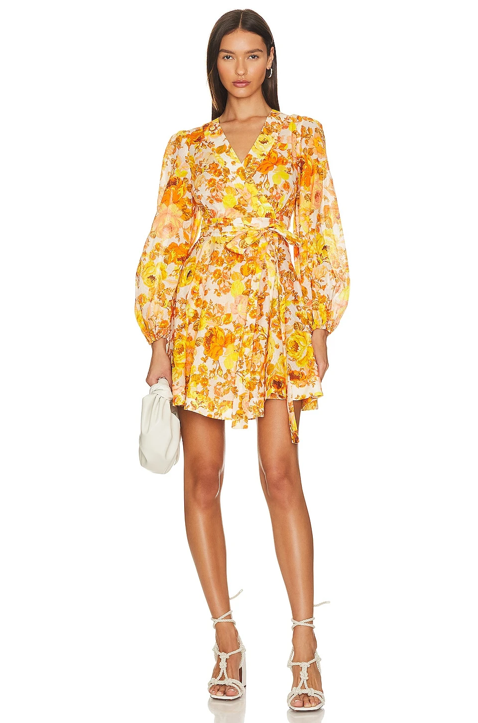 Zimmermann ROBE COURTE RAIE Yellow & Orange Floral